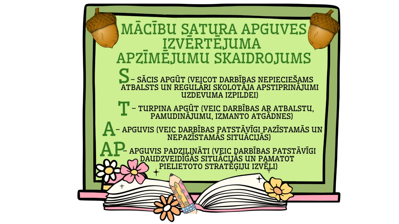 Mācību satura apguves izvērtējuma apzīmējumu skaidrojums